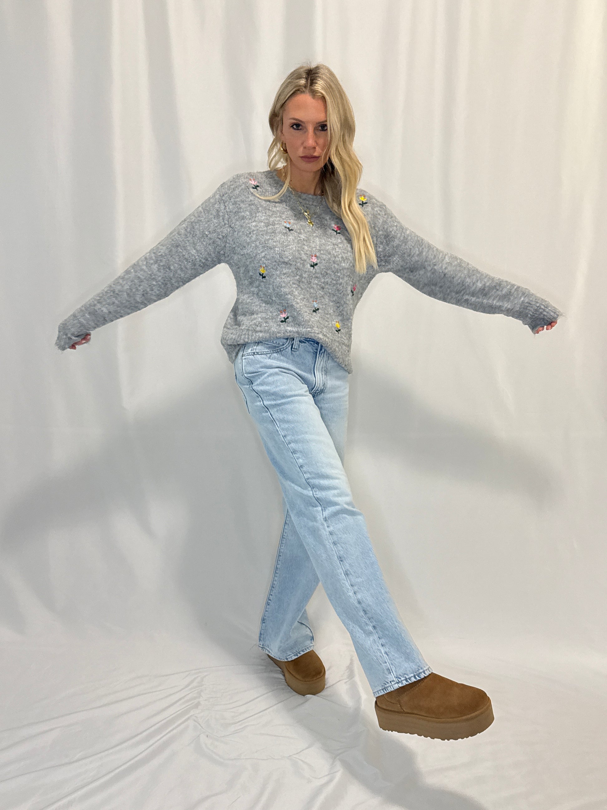 Elevate your wardrobe with the Flower Embroidered Sweater Top, featuring delicate floral embroidery that adds a refined touch to a classic silhouette. Crafted for both comfort and style, this sweater top offers warmth with breathable fabric, making it ideal for transitional seasons. Its sophisticated design allows effortless pairing with both casual and dressier outfits, providing versatility and elegance for a polished look.